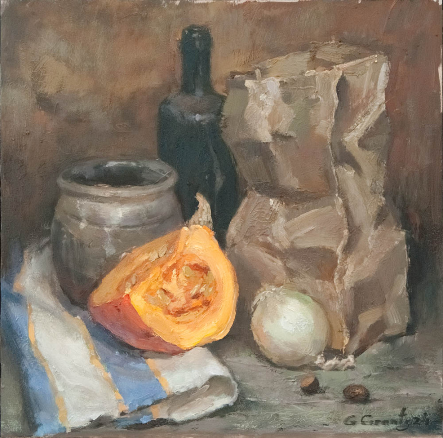 50x50cm. Mixed media (acrylic, oil) on board. 2024.